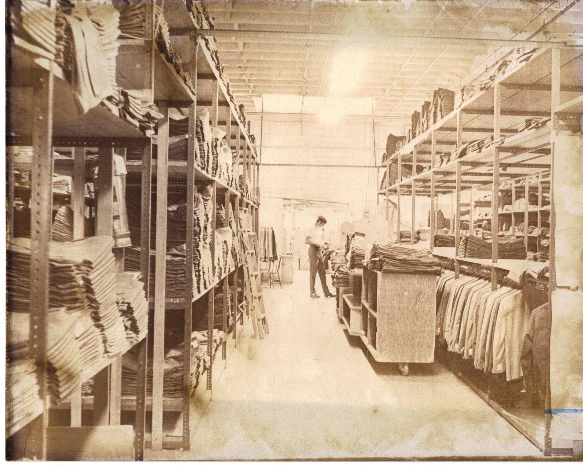 Rough Rider still employed more than seven hundred people. Barry Nelson recalls: “My dad and grandma worked there! I used to go visit my dad and was amazed at the process—he was a cutter—cut scraps of fabric into a pattern, which was then sent over to the gals on the sewing machine.” But the mid-1970s saw the emergence of large textile mills and factories in China and other developing countries in Asia and Latin America. These operations offered cheap labor and raw materials, as well as the capacity to quickly manufacture huge orders.